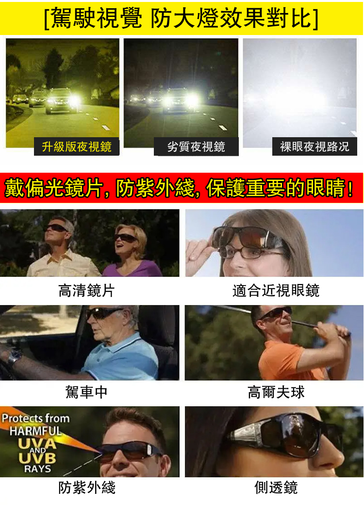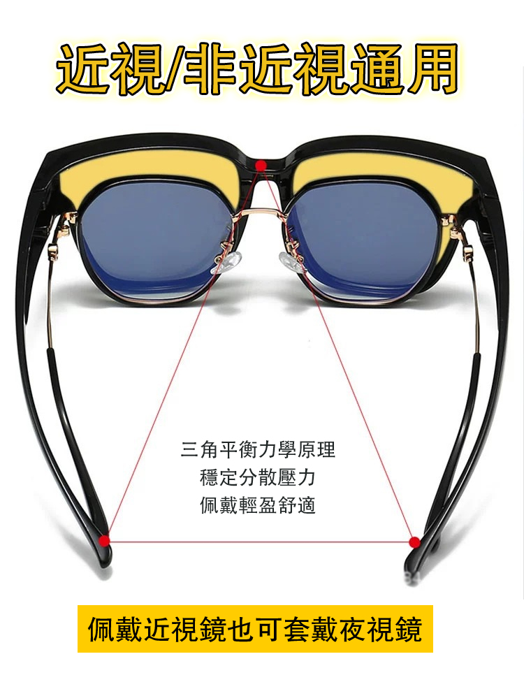 加寬戴近視鏡上開車偏光套鏡夜視